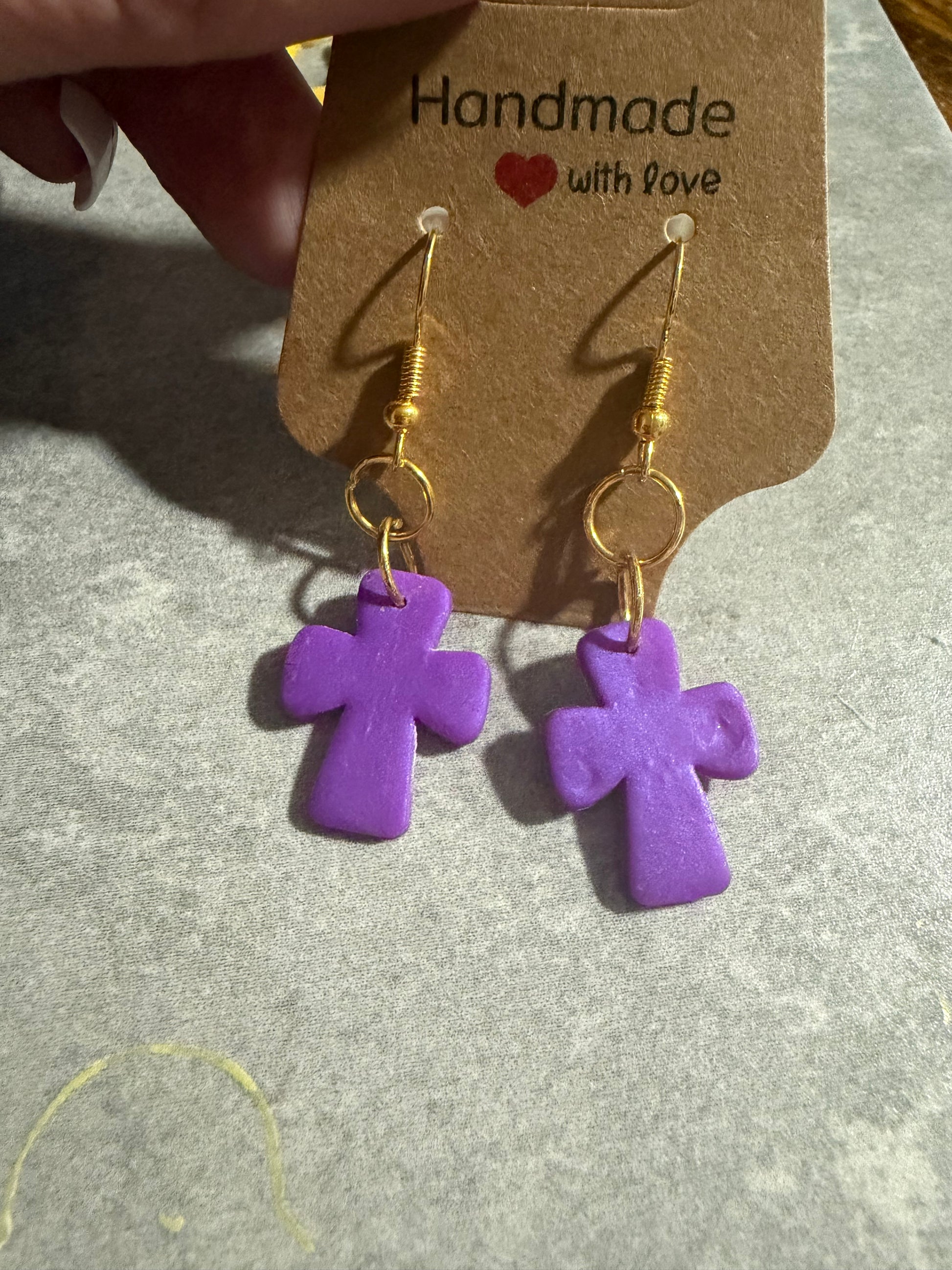 Handmade Cross Earrings – Polymer Clay Faith Dangle Earrings